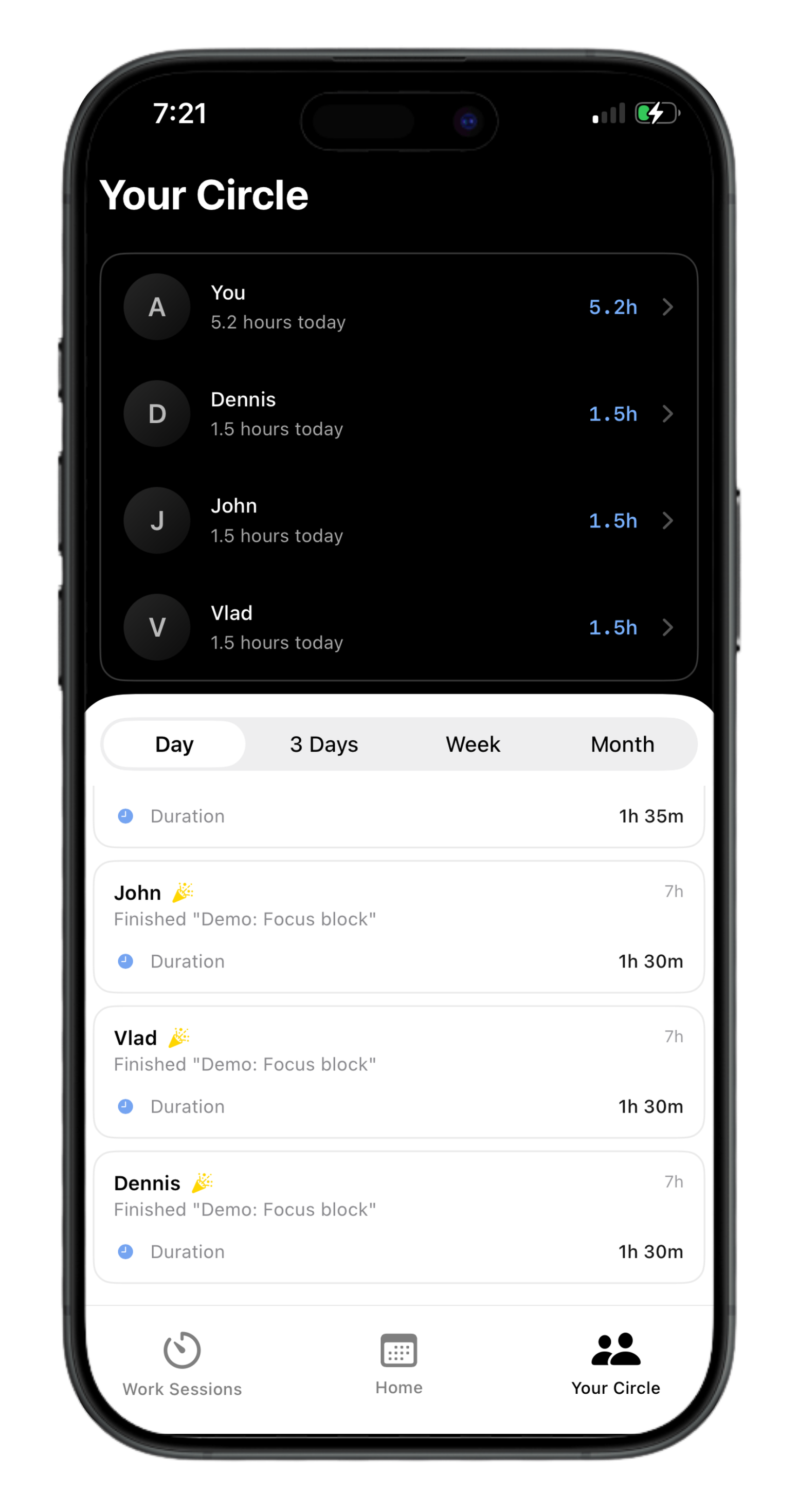 Streaks tied to focused time, not "open the app once." Lose the day, lose the streak. Honest, by design.